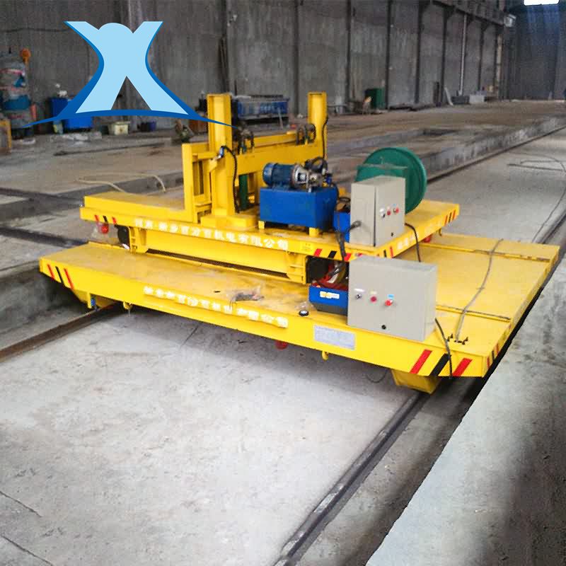 擺渡平車一般用于兩條或多條平行軌道之間的換軌,由上下兩層軌道平車疊加組成,地溝中行駛,臺面與地面平齊,且大車臺面上安裝有軌道,整車運行路線呈前后布置,大車橫向快速移動后能夠準確的停止、定位和接軌,小車在大車臺面軌道上呈縱向路線運行,實現小車換軌換位功能。擺渡式軌道平車不僅僅只是兩層,還可根據情況設計為三層或多層。